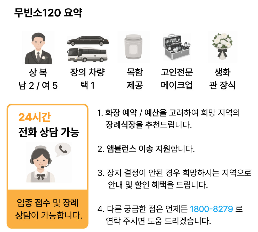◈ 장례 서비스 기간은 3일장 기준이며, 1일장 추가시 별도 비용이 발생 됩니다.
