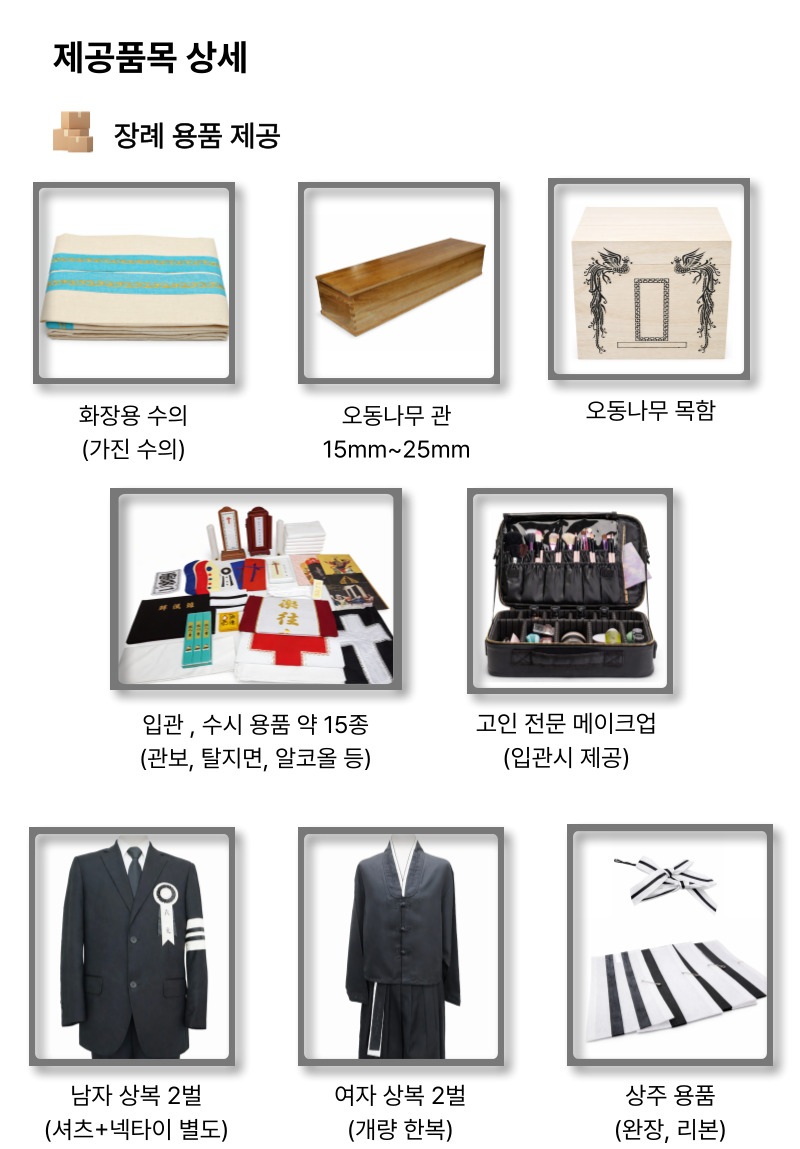 | 상주용품 | 상주리본, 완장, 머리핀 등 일체 | 제공 |