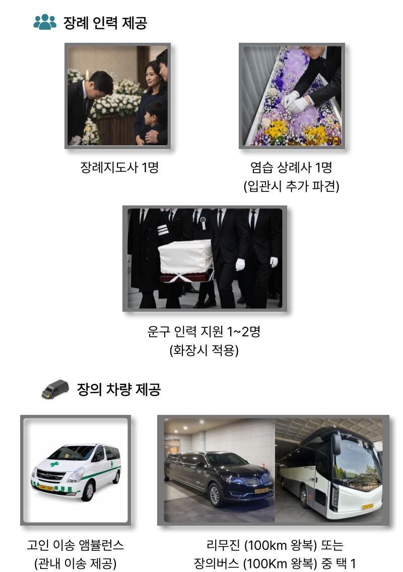 | 인력지원 | 장례지도사 전담 장례진행 | 1 명 |